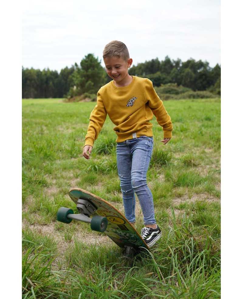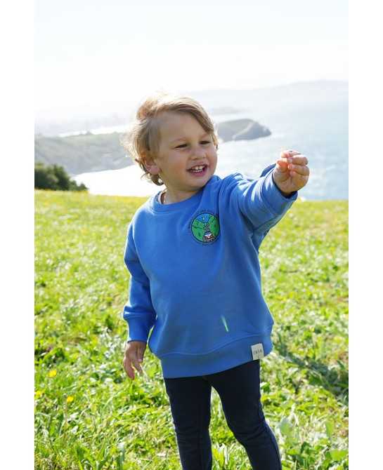 Fabricada en felpa perchada, 85% algodón orgánico hilado y peinado, y 15% poliéster reciclado. Certificaciones: Fair Wear, PETA Approved Vegan Te recomendamos lavarla con colores similares dándole la vuelta, no planchar el estampado e incluso plancharla al revés para que se conserve perfecta durante más tiempo.