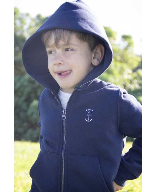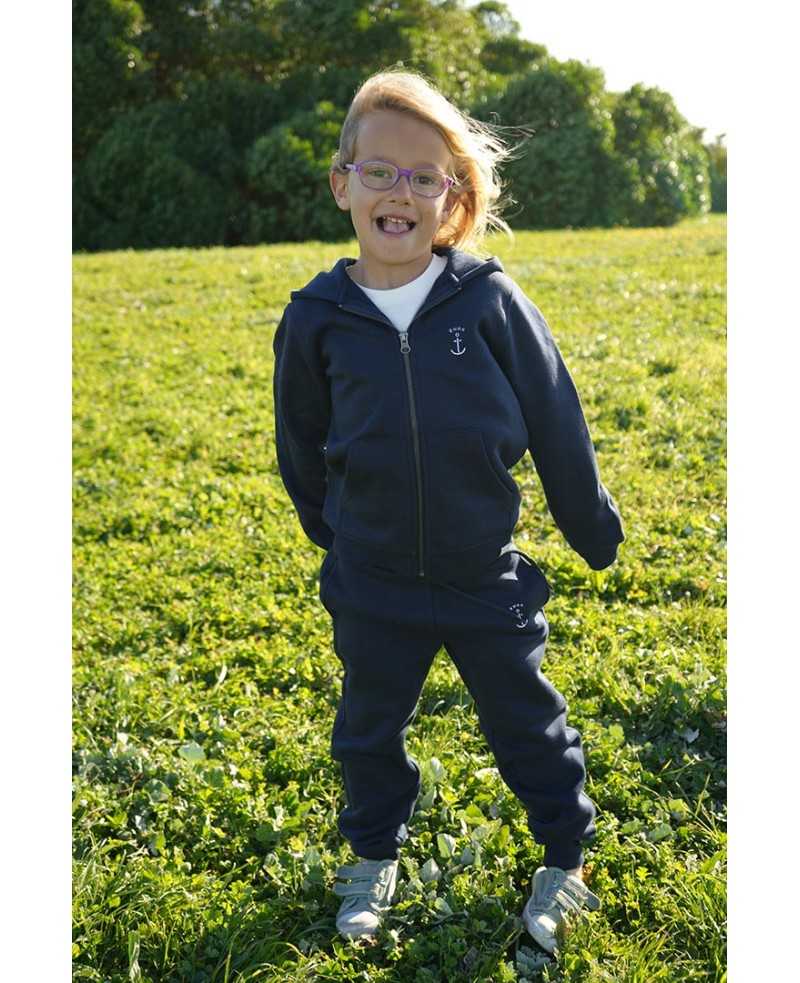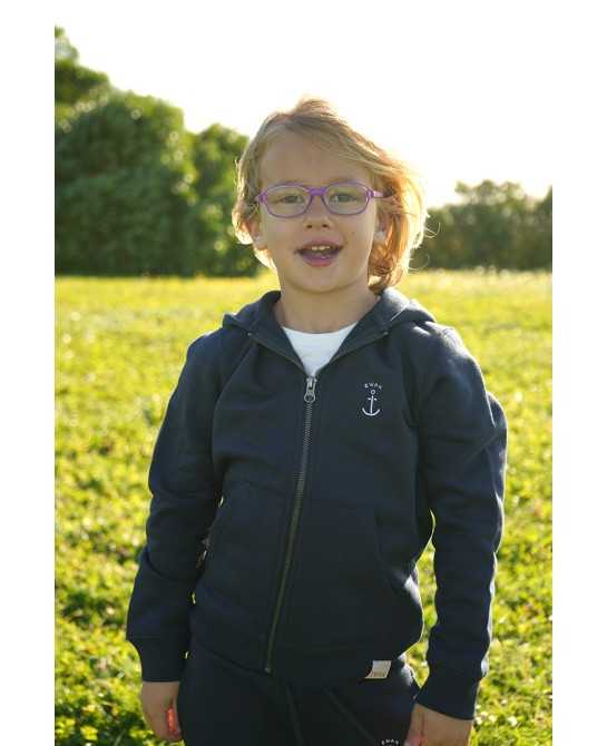 Composición: 85% algodón orgánico y 15% poliéster reciclado postconsumo. Lavado con enzimas. Felpa perchada. La cremallera es de metal reciclado. 4 botellas recicladas.