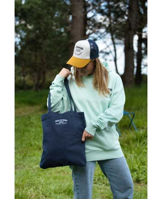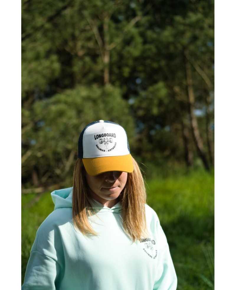 Composición: visera y parte frontal 100% algodón orgánico; paneles traseros de rejulla 100% poliéster reciclado.