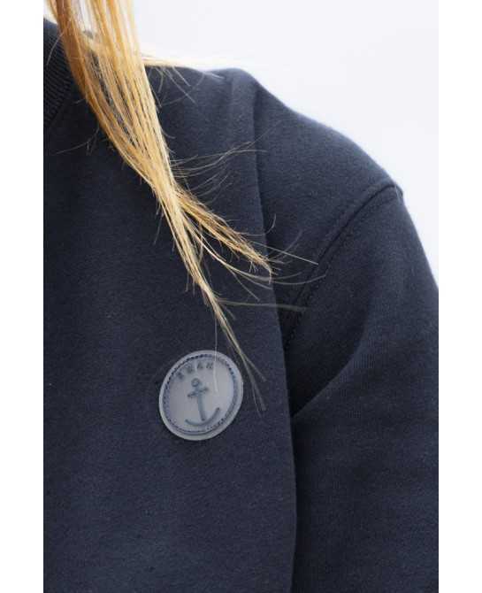 Composición: 85% algodón orgánico y peinado Ringspun y 15% poliéster reciclado postconsumo. Felpa perchada. Lavado con enzimas. 6 botellas recicladas. 300g.
