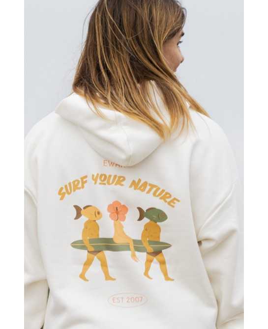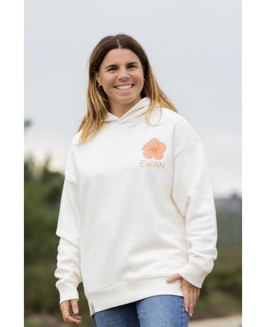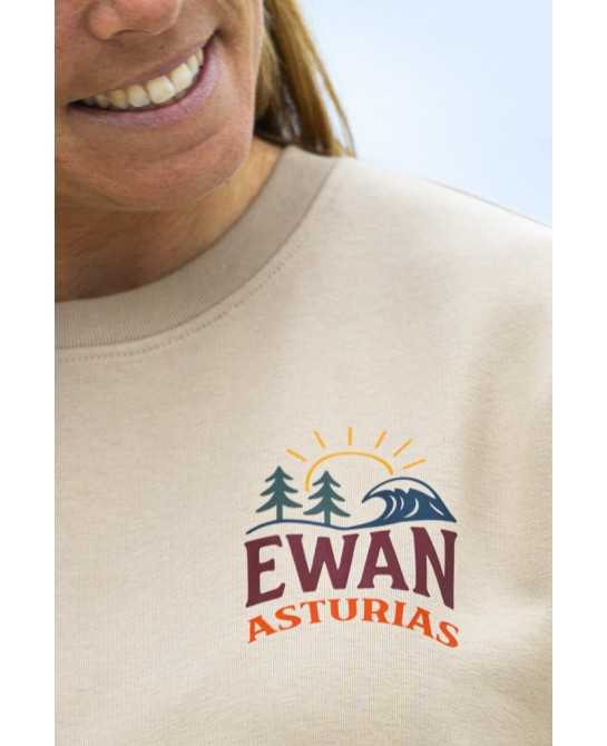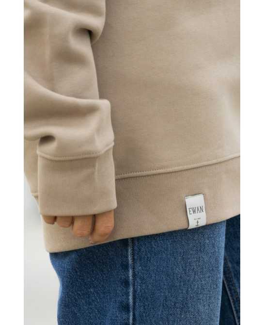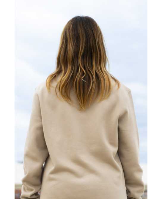 Composición: 85% algodón orgánico y peinado Ringspun y 15% poliéster reciclado postconsumo. Felpa perchada. Lavado con enzimas. 5 botellas recicladas. 350g.