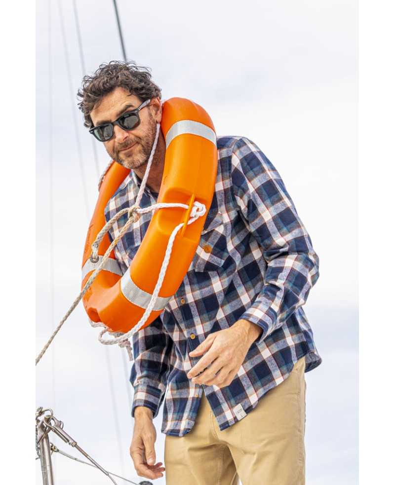 Camisa de franela con estampado de cuadros de manga larga con bolsillo