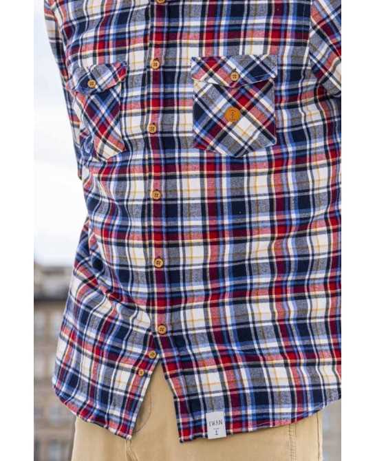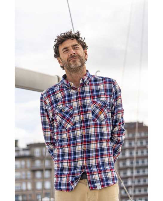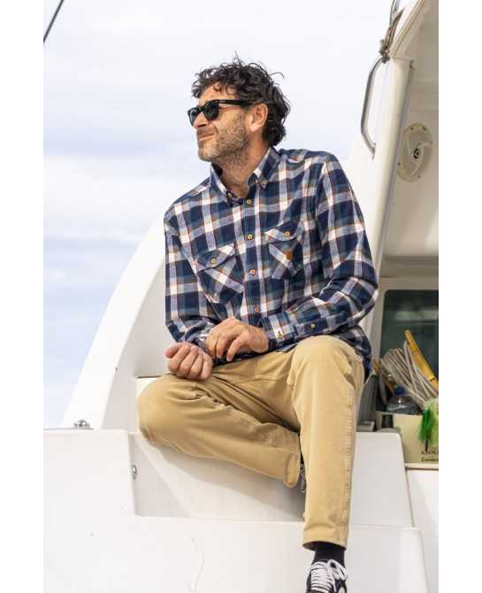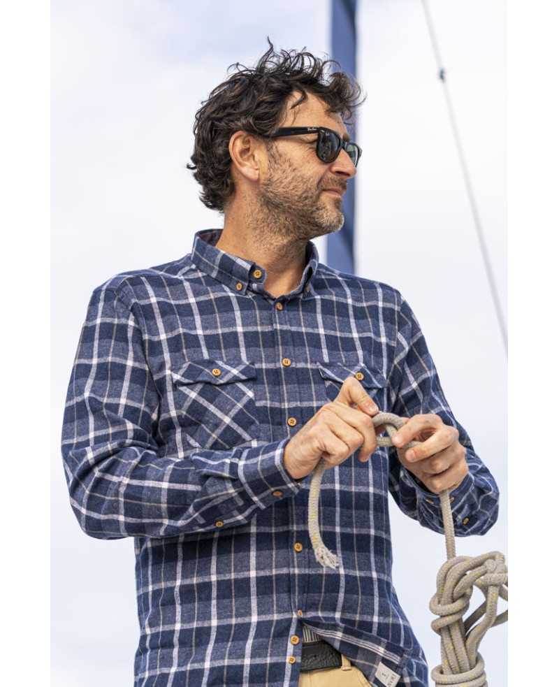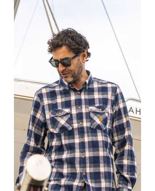 Camisa de franela con estampado de cuadros de manga larga con bolsillo