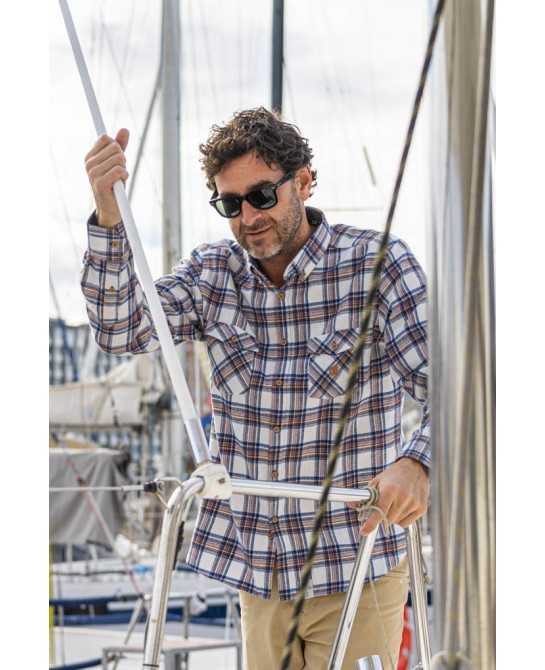 Camisa de franela con estampado de cuadros de manga larga con bolsillo