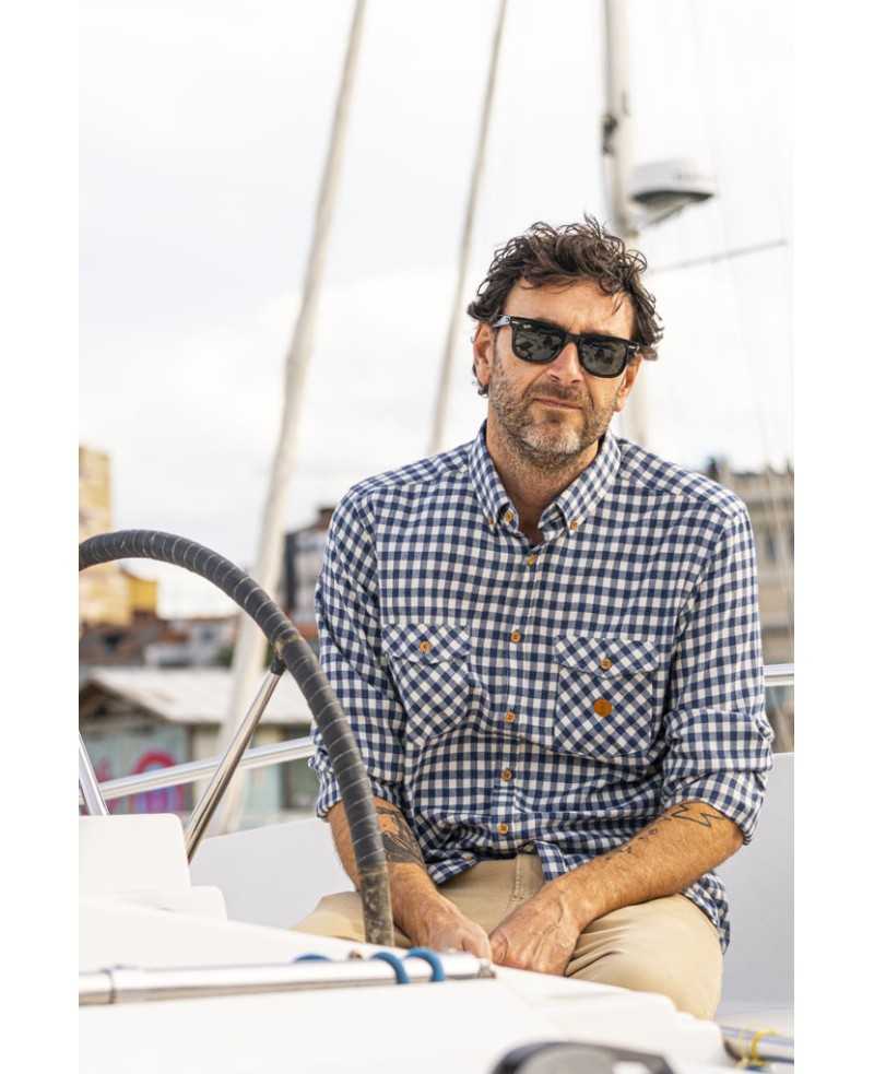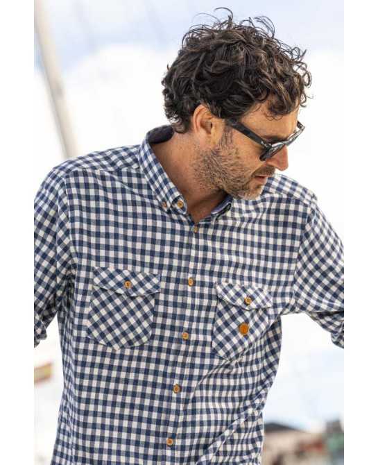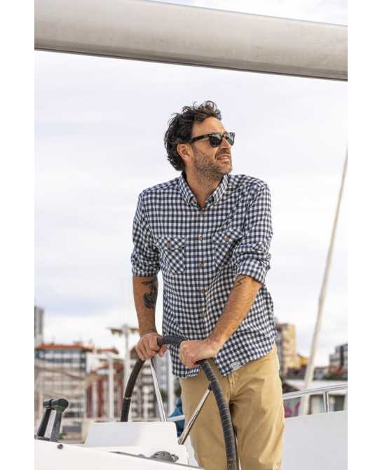 Camisa de franela con estampado de cuadros de manga larga con bolsillo