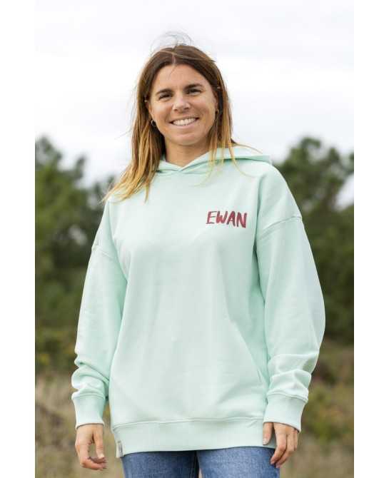 Composición: 85% algodón orgánico y 15% poliéster reciclado post-consumer. Lavado con enzimas. Felpa perchada. 280g.