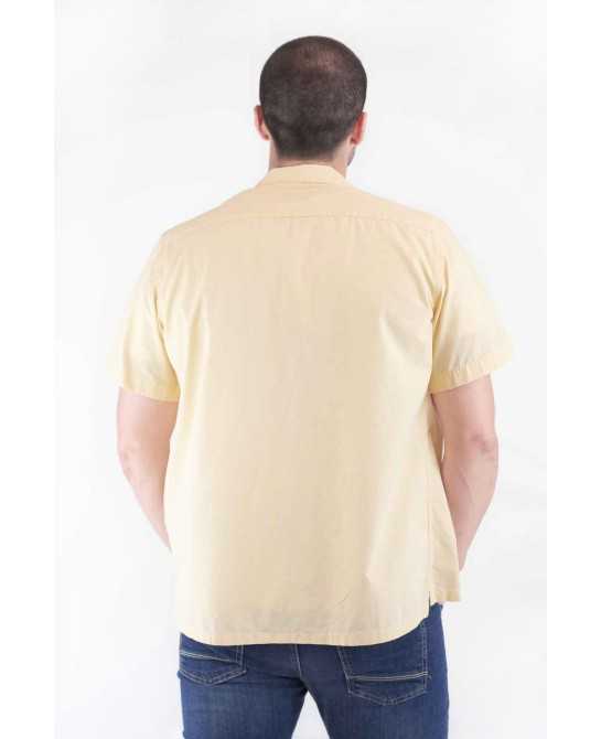 Camisa lisa efecto lavado con bolsillo y manga corta unisex.